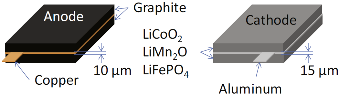 锂离子电池极片经过浆料涂敷,干燥和辊压之后,形成集流体及两面涂层的三层复合结构。然后根据电池设计结构和规格,我们需要再对极片进行裁切。一般地,对卷绕电池,极片根据设计宽度进行分条;叠片电池,极片相应裁切成片,如图1所示。目前,锂离子电池极片裁切工艺主要采用以下三种:(1)圆盘剪分切,(2)模具冲切,(3)激光切割。